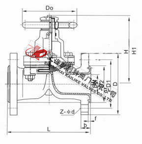 4、閥體與蓋被中間隔膜隔開,使得隔膜上方的閥蓋,閥杆零件不受介質侵蝕;