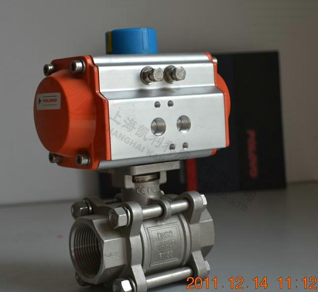 1、氣動三片式球閥由仿意大利AT氣動執行機構和Q11F球閥組成。