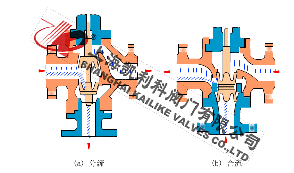 三通調節閥閥芯結構爲圓筒型薄壁窗口形閥芯,采用閥芯側面導向與閥座内表面導向和上襯套導向,因此導向面積大,工作可靠。流體對閥芯作用方向都處于流開狀态,故閥工作性能穩定。三通調節閥有三通合流式調節閥(把兩種流體經三通閥混合成一種流體)和三通分流式調節閥(把一種流體經三通閥分成兩路流出)兩種形式。當公稱通徑DN≤80mm和壓差較小的場合時,分流閥可以采用同口徑的合流閥代替。流量特性有直線性、抛物線性兩種。三通調節閥它可以代替二台同時使用的二通調節閥,起分流或合流作用及兩相調節配比作用。